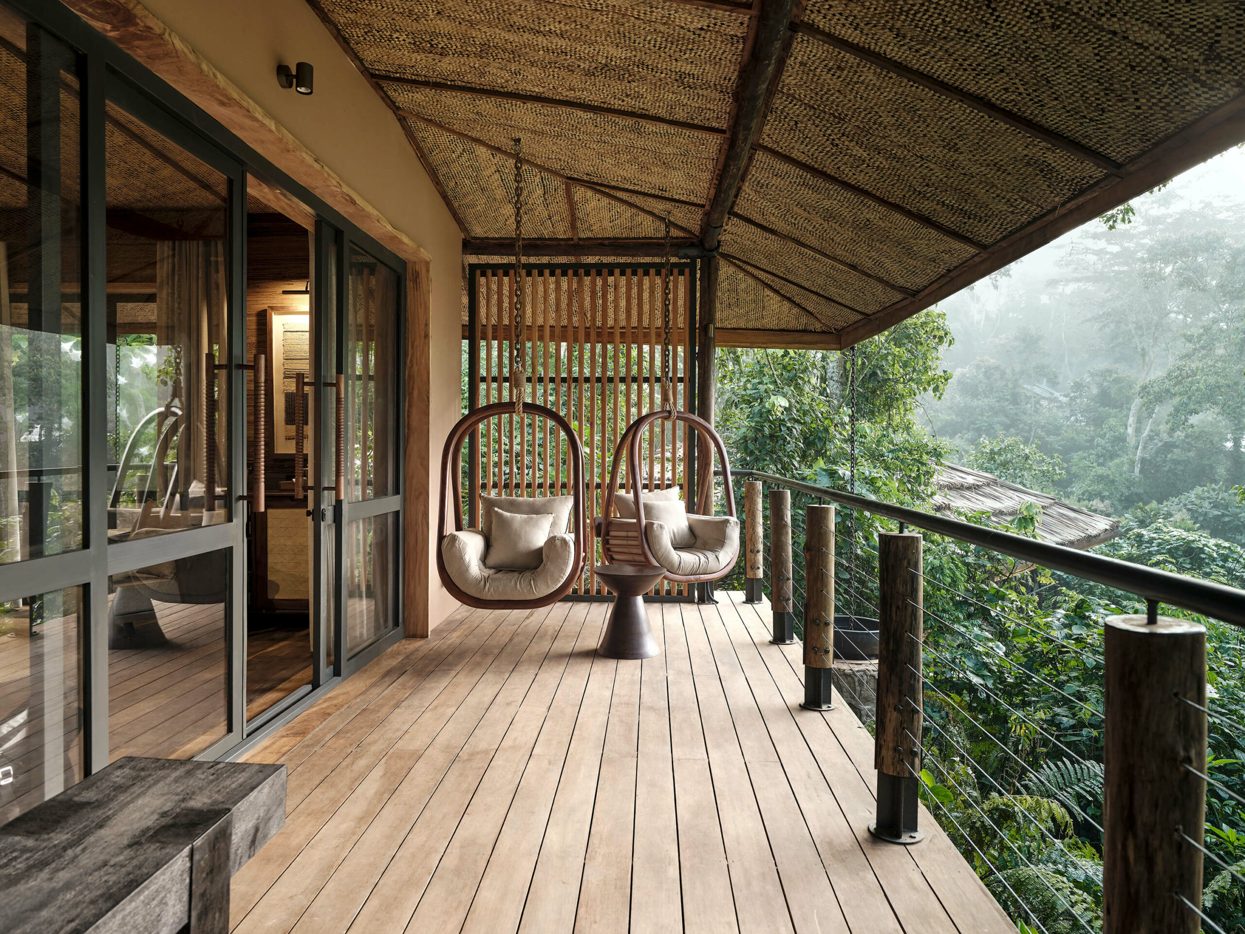 10 villas privées indépendantes : matériaux naturels et design respectueux de l’environnement, avec terrasse privée, salle de bains avec grande baignoire façon hammam, déco artisanale locale, et équipement moderne.